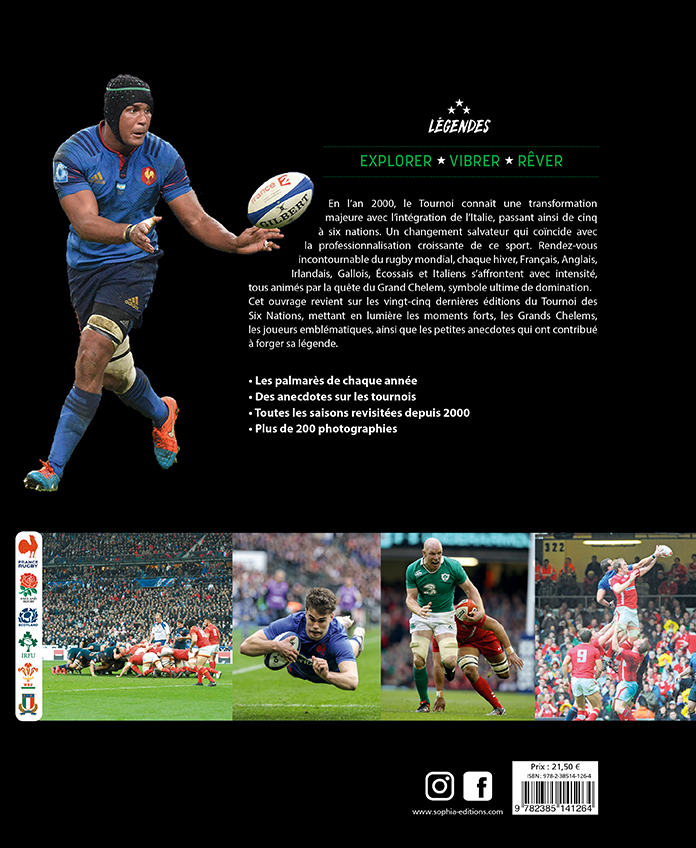 En l’an 2000, le Tournoi connaît une transformation majeure avec l’intégration de l’Italie, passant ainsi de cinq à six nations. Un changement salvateur qui coïncide avec la professionnalisation croissante de ce sport. Rendez-vous incontournable du rugby mondial, chaque hiver, Français, Anglais, Irlandais, Gallois, Écossais et Italiens s’affrontent avec intensité, tous animés par la quête du Grand Chelem, symbole ultime de domination. Cet ouvrage revient sur les vingt-cinq dernières éditions du Tournoi des Six Nations, mettant en lumière les moments forts, les Grands Chelems, les joueurs emblématiques, ainsi que les petites anecdotes qui ont contribué à forger sa légende.